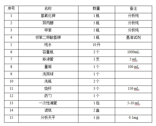 自動酸值測定儀所需化學試劑及輔助材料